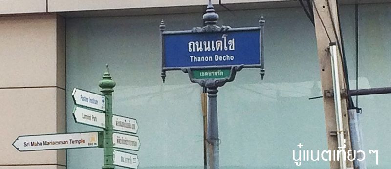 เดินออกจากร้าน Cafe ไปเรื่อยๆ ไม่นานก็เจอป้าย ถ.เดโชจนได้ อยู่ตรงข้ามตึกสีน้ำเงินที่เดินผ่านไปนั่นแหละที่เราคิดว่าเป็นถนนทางแยกที่จะไปตึก "AIA" อีกตึกได้ แต่เพราะเมื่อกี้เราเดินมาอีกทางด้านหนึ่ง เลยไม่เห็นป้ายนี้ พอเห็นป้ายก็ข้ามถนนไปเลย และดูซิว่าจะเจอหรือเปล่า ตอนแรกนึกว่าต้องเดินอ้อมเลี้ยวไปอีกด้านด้วยซ้ำ ถึงจะเจอป้ายบอกว่า ถ.เดโชแต่ใช่จะหาที่ต้องการหาเจอ