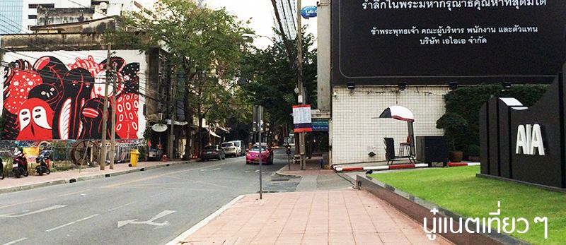 แต่เราตัดสินใจเดินต่อไปยังตึกสูงๆ ข้างหน้าแบบวัดดวงเลยว่าใช่ตึก "AIA" หรือเปล่า ซึ่งก็ตึก "AIA" จริงๆ แต่เราหันไปมองรอบๆ ก็ไม่เจองาน "Street Art" ที่ว่าอยู่ด้านหน้าตึก หรือว่าโดนลบไปแล้ว แต่เรามาดูอีกทีชื่อสาขาหน้าตึกคือ "AIA สาขา ถ. สุรวงศ์ แต่ที่เราจะหาคือ ถ.เดโช เลยลองเดินย้อนไปที่ตึก "AIA" ที่เราเห็นเมื่อกี้อีกที โดยจะเดินเลี้ยวเข้าแยกที่มีตึกสีน้ำเงินนี่แหละ
