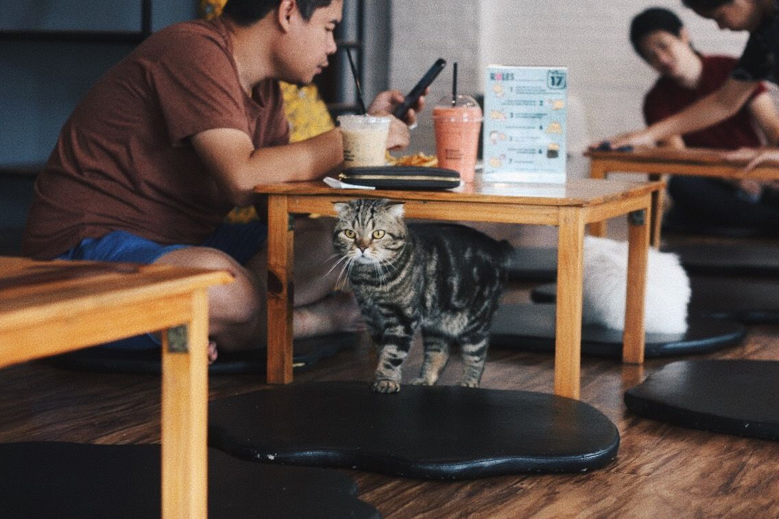 ร้านนี้ชื่อว่า CAT 'n' A CUP Cat Cafe