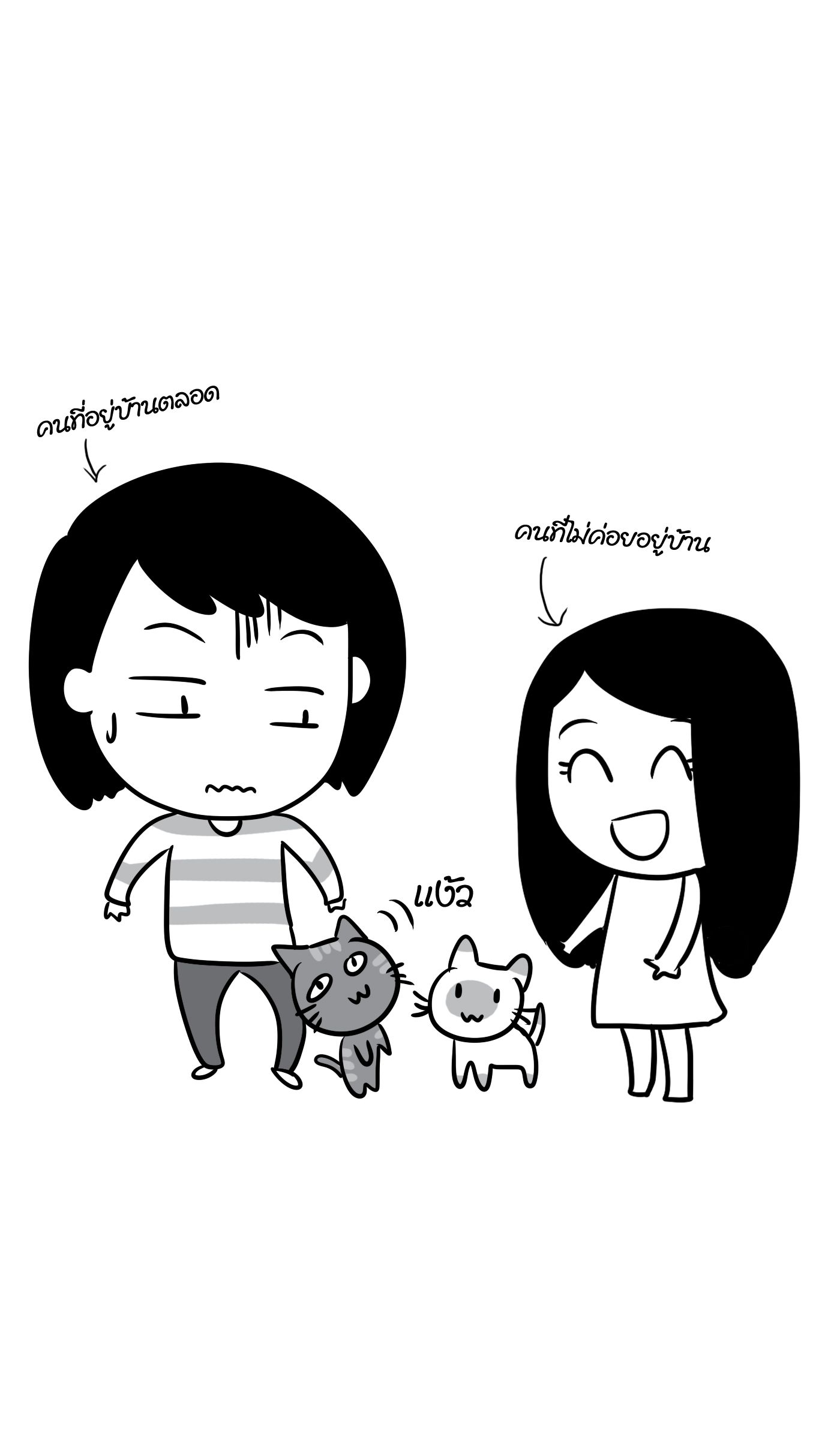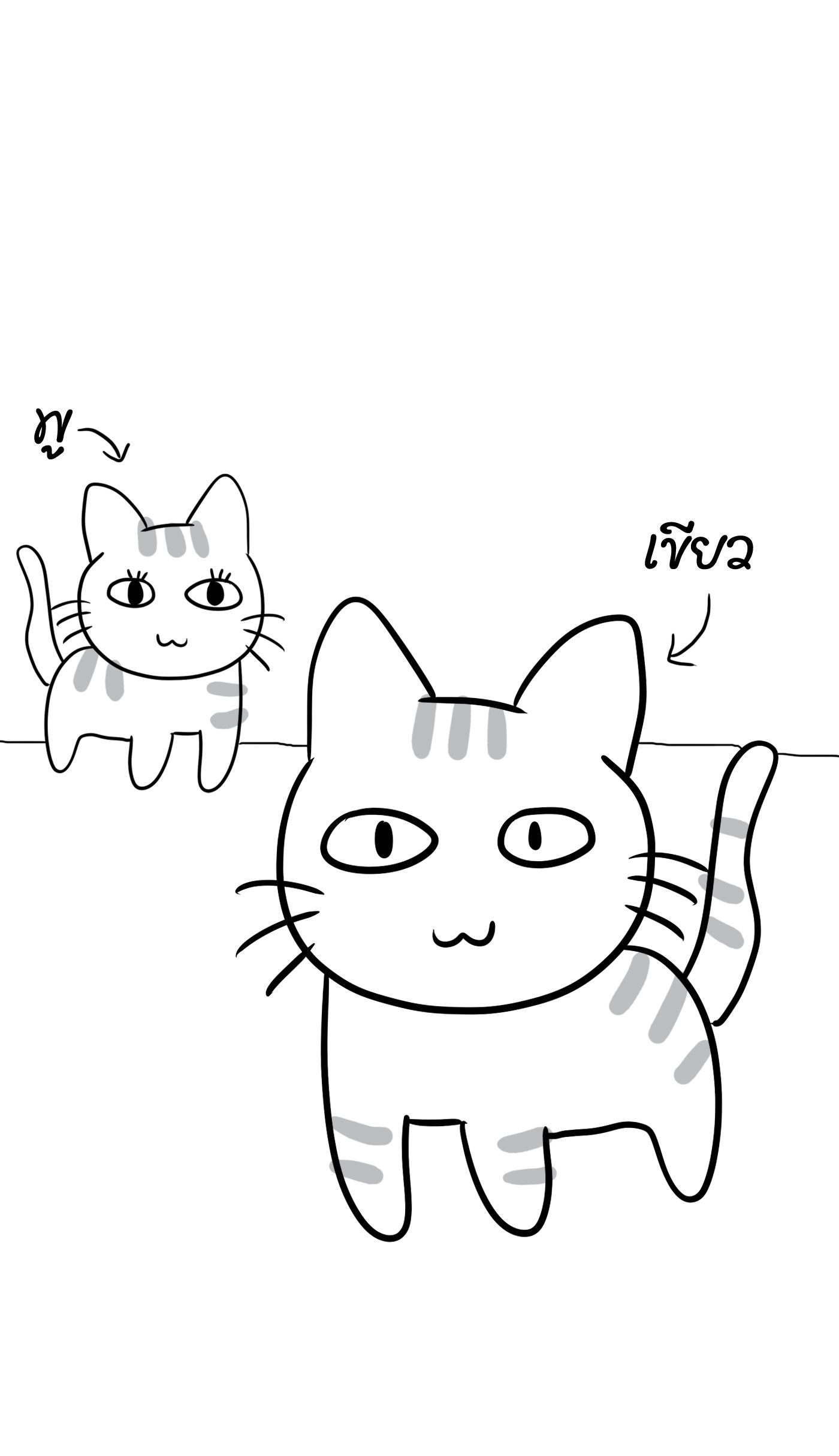 เขียวกลับมาในบ้าน ก็เจอกับแมวใหม่ 2 ตัวชื่อเปากับเทา เป็นแมวตัวเมีย ดูท่าจะเข้ากันดีนะ