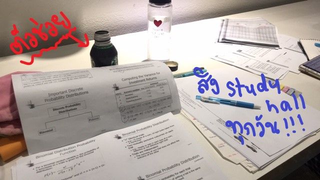ตอนแรกก็เตรียมใจละดูจากวิชาเรียนเจอเลขแน่นอนแต่คงประยุกต์แหละน่าจะไม่คำนวนจนคิ้วขมวดเลยชิวมากก่อนมาเรียนป๊าบอกให้ไปเทคคอร์สสถิติก็ไม่ไปเพราะคิดว่าคงไม่ได้เรียนลงลึกอะไรมากมายแต่ก็แอบกลัวนิดๆ เลยพอมาถึงเราก็ถามเพื่อนว่า ถ้าไม่มีพื้นฐานเลขสถิตินี่น่าไหวไหม เพื่อนก็บอกมันมีตัวcoreที่คำนวณหลักๆในเทอมสองถ้าไม่มีพื้นฐานน่าจะลำบากแล้วก็แนะนำว่าควรลงตัว statistic analysisในเทอมแรกนี้เพื่อปูพื้นไปก่อน เราก็โอเคจัดไปและแล้วก็มาถึงช่วงเวลาที่โอ้โห หนึ่งในช่วงเวลาที่จะจำไปตลอดชีวิต คำนวนมากมายคำนวนเยอะมากไหนจะตารางกราฟโปรแกรมนู่นนี่มาหมดและต้องเรียนสอบพรีเซนท์ภายในสามอาทิตย์ ความชิวหายความเครียดเข้ามาแทนทันทีจ้า ร้องไห้บ่อยอะ บางวันเข้าใจบางวันไม่เข้าใจ เรียนไม่ค่อยทันเพื่อนเท่าไหร่แต่ก็พยายามเท่าที่จะไปไหว เป็นสามอาทิตย์ที่เกือบยาวนานที่สุดในชีวิต รู้สึกแบบทำไมนะทำไมไม่เทคคอร์สแบบที่ป๊าบอก ทำไมไม่เตรียมตัว ทำไมเต็มไปหมด จนถึงขั้นมาเรียนทำไมวะมาที่นี่ทำไมวะ แต่ก็กัดฟันอะพยายามทำการบ้านผิดๆถูกๆ สอบไม่ได้คะแนนดีเท่าไหร่แต่ก็โอเคอย่างน้อยๆเราก็ทำได้นิดนึง