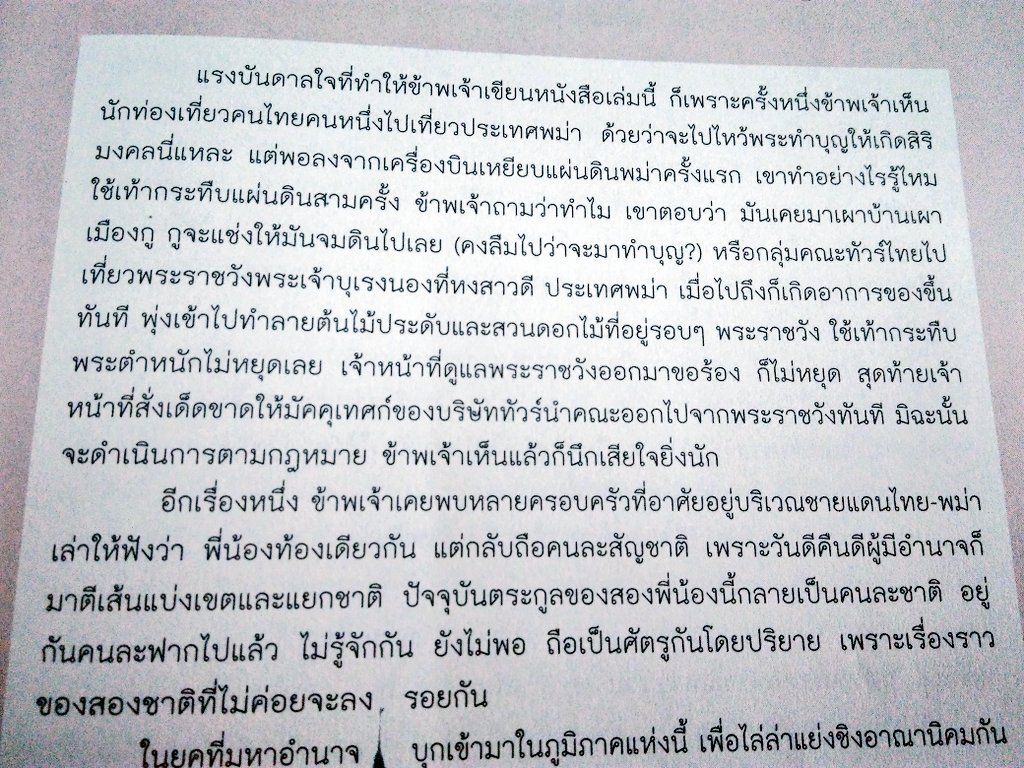 ภายในเล่ม ผู้เขียนก็จะเล่าเรื่องราวของทางฝั่งพม่า ไทย ลาว ควบคู่กันไป เช่น