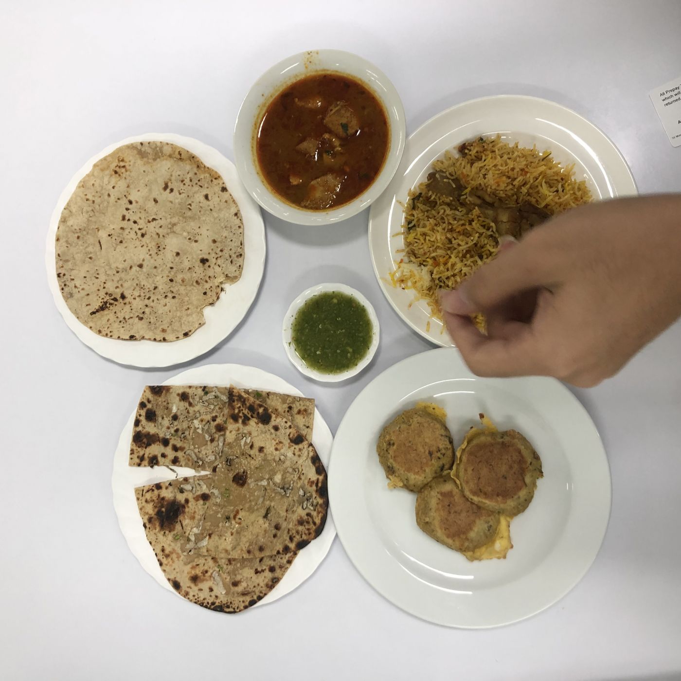 สิ่งที่สะดุดตาเราอย่างแรกก็คือ Biryani หรือข้าวหมกไก่อินเดีย เค้าจะใช้ข้าว Basmati ทำ เป็นข้าวเม็ดยาวๆ ร่วนกว่าข้าวขาวที่เราเคยกิน ส่วนก้อนๆนั่นเค้าบอกว่ามันคือ Chicken Kebab (ไม่ใช่เคบับแบบบ้านเราอะ) พอกินละแบบ แอร่ก ตาย ไตพังแล้ว เค็มมาก แต่บางคนอาจจะชอบนะ แต่เราขอไม่ให้ผ่าน ทั่งร่วนทั้งเค็มจริงๆ ส่วนแกงสีส้มๆนั่นก็คือ Chicken Masala ถ้าเราเข้าใจไม่ผิดน่าจะเป็นแกงกะหรี่นะ ที่ร้านเค้าบอกว่าควรกินคู่กับแป้ง แต่พ่อค้าเค้าอินดี้เหมือนไม่อยากขาย เลยบอกว่าแป้งยังไม่ทำตอนเช้า เราเลยต้องไปซื้อแป้งจากร้าน Punjabi ที่โรงแรก เราลองสั่งแป้ง Chapati กับ Garlic Naan พ่อค้าร้านนี้ขายเก่งต่างกับร้านแรก ตอนแรกเค้าบอกไม่มี Naan แต่พอเราดูอยากกิน เค้าเลยไปทำให้ นอกจากนี้เค้ายังแนะนำให้เราซื้อแกงเค้าไปกินด้วย เพราะกินคู่กับแป้งมันจะอร่อย แต่เราซื้อแกงไปแล้ว เลยปัดๆว่าไม่เอา ไว้เดี๋ยวครั้งหน้ามาลองนะคะลุง ซึ่งแป้งของลุงก็หอมมากจริงๆ ไอเลิฟ
