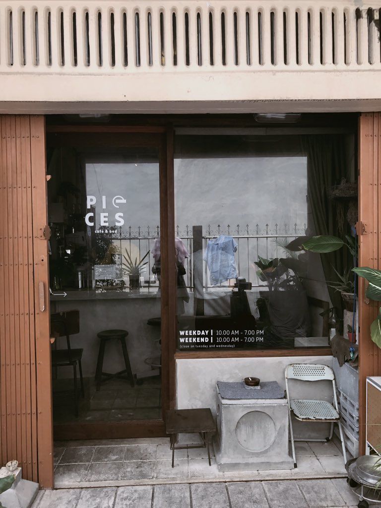 สวัสดีค่ะ นี่เป็นคาเฟ่แรกที่เราจะรีวิวนะคะ ชื่อร้านว่า Pieces café & bed ค่ะ เป็นคาเฟ่และโฮสเทลในตรอกเล็กๆ ตั้งอยู่ที่ถนนทรงวาดค่ะ ซึ่งสำหรับเราแล้วไปยากมาก เป็น Hidden Place ของแท้เลย โดยวิธีการเดินทางของเรานั้น เรามาโดยการนั่ง mrt มาลงที่สถานีหัวลำโพงค่ะจากนั้นนั่งรถเมล์สาย 40 ไปลงตรงเยาวราช ตรงไหนก็ไม่รู้ ซึ่งตรงนี้แหละเป็นจุดเริ่มต้นของการหลงทางด้วยความที่เราไม่เคยไปแถวเยาวราชด้วย เราเลยไม่รู้เส้นทางเลย เปิด google map เดินหาร้านอยู่นานมาก วนไปวนมาจนเจอสักที /ปาดเหงื่อ (ปล.ใครรักสบายหน่อยก็แกรบโล้ดเลยจ้า)