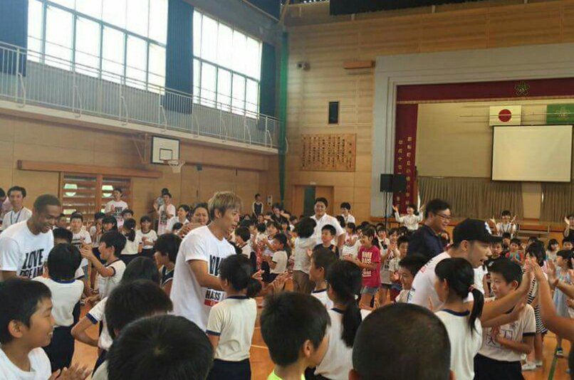 Nesmith ที่เป็นชาว Kumamoto มาเต้นกับเด็กๆ ที่โรงเรียนประถม ในเมือง Mifune ที่มีเด็กนักเรียนทั้งหมดประมาณ 200 คน