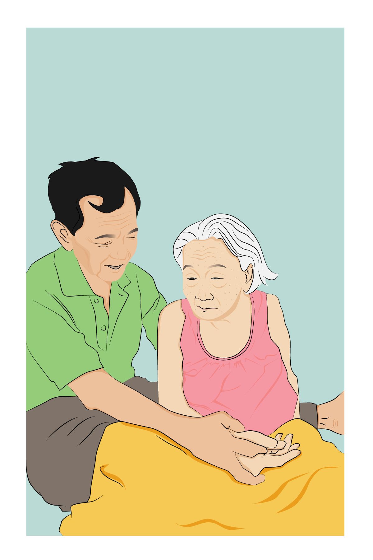ความยากยิ่งเพิ่มขึ้นเมื่อผู้สูงอายุที่เราดูแลเริ่มหลง ๆ ลืม ๆ และเดินไม่ได้ แต่คุณลุงตอบด้วยใบหน้าเปื้อนยิ้มขัดกับข้อความที่บอกเล่ามาข้างต้น เราอาจจะนึกไม่ถึงว่าผู้สูงอายุที่หลง ๆ ลืม ๆ เดินไม่ได้ จะวุ่นวายขนาดไหน แต่ความเปลี่ยนแปลงที่เกิดขึ้นกลับทำให้คุณลุงต้องปรับตัว ปรับความคิด และทัศนคติของตัวเองเพื่อรับมือกับความเปลี่ยนแปลงครั้งนี้