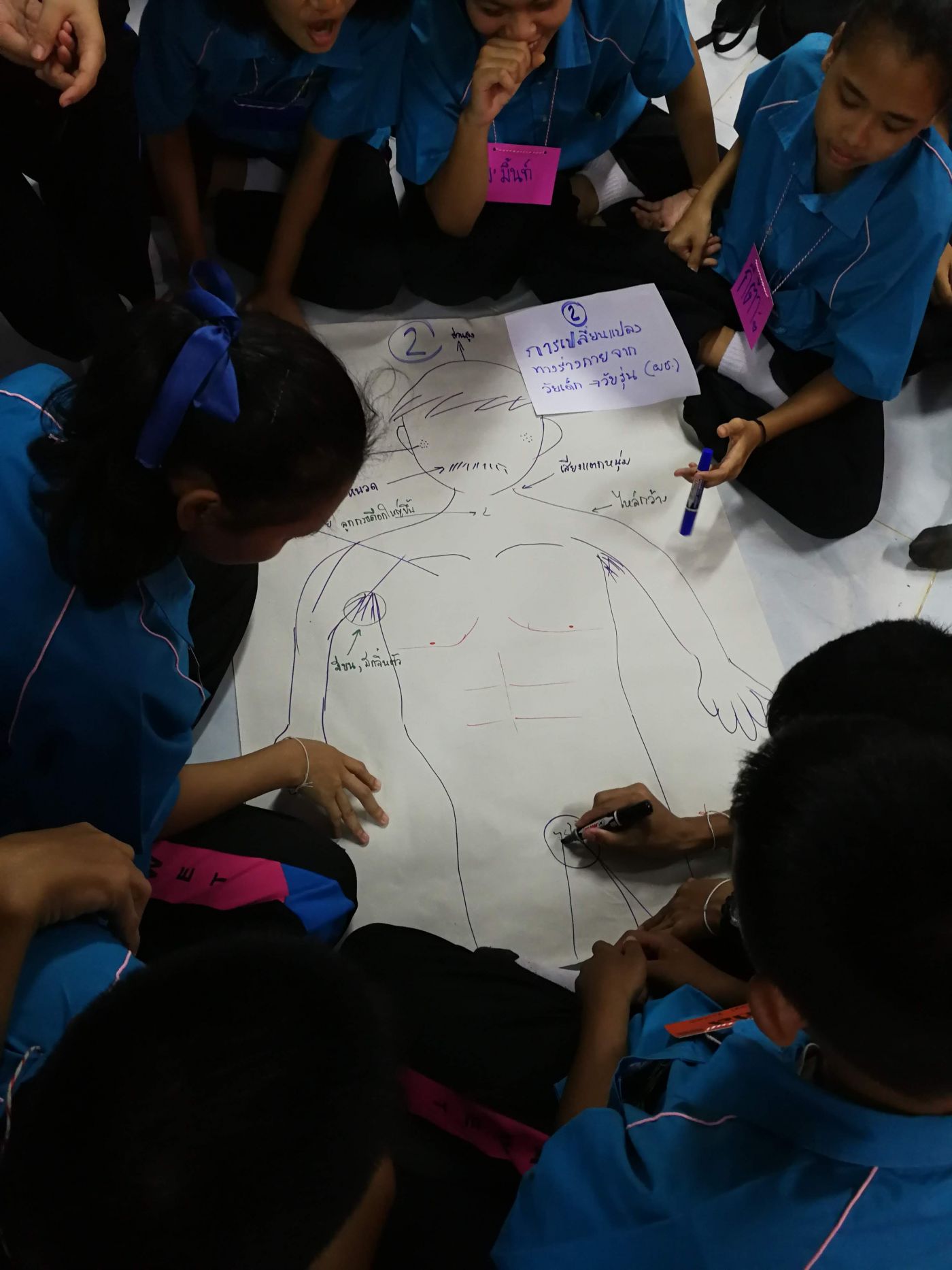 เด็ก ๆ ทุกกลุ่มช่วยกันเติมความเปลี่ยนแปลงของร่างกายทั้งเพศชายและเพศหญิงเมื่อเข้าสู่วัยรุ่น