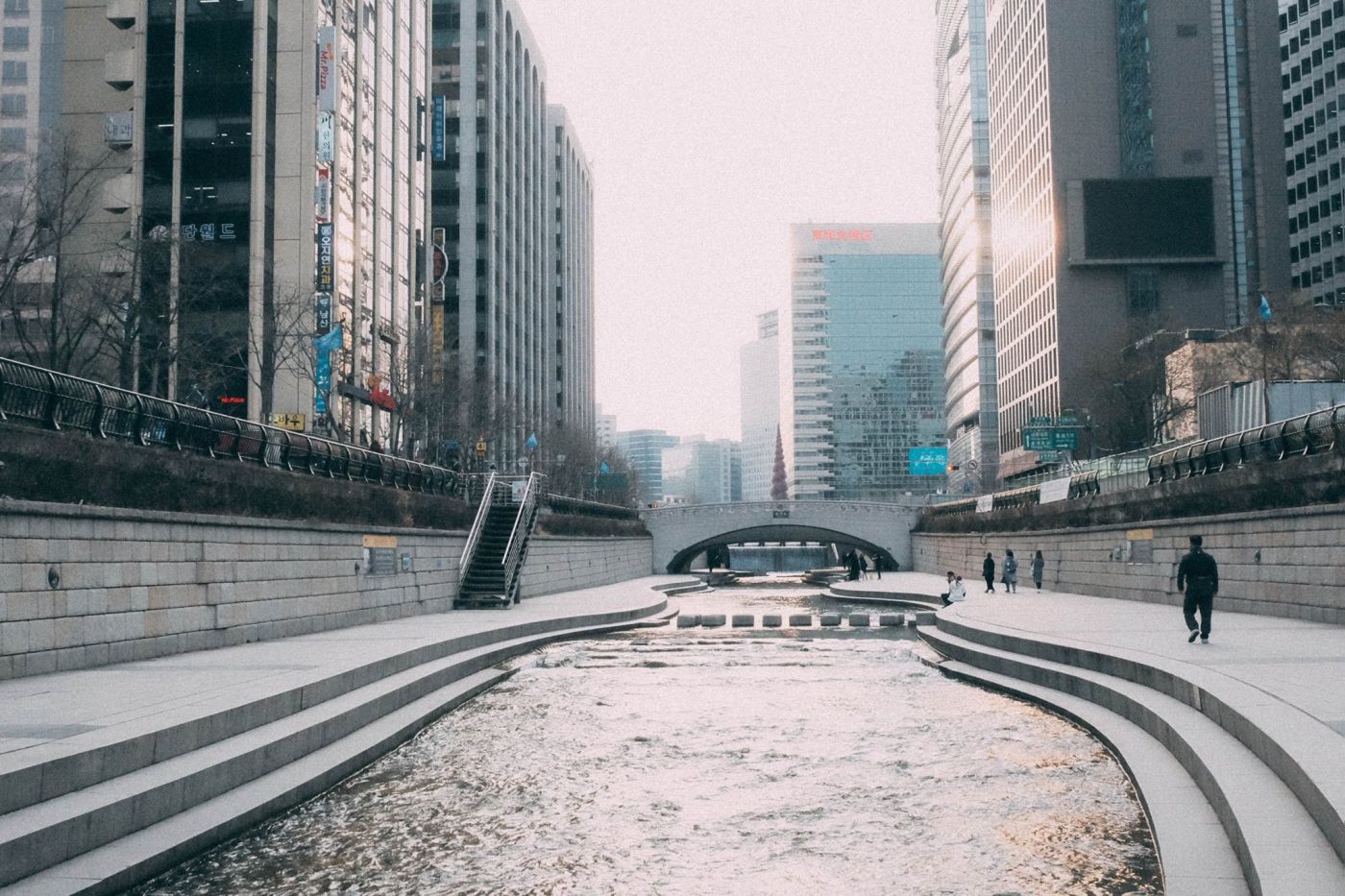 (คลองชองเกชอนช่วงมีนาคม คนไม่ค่อยเล่นน้ำเท่าไหร่เพราะยังหนาวมาก)