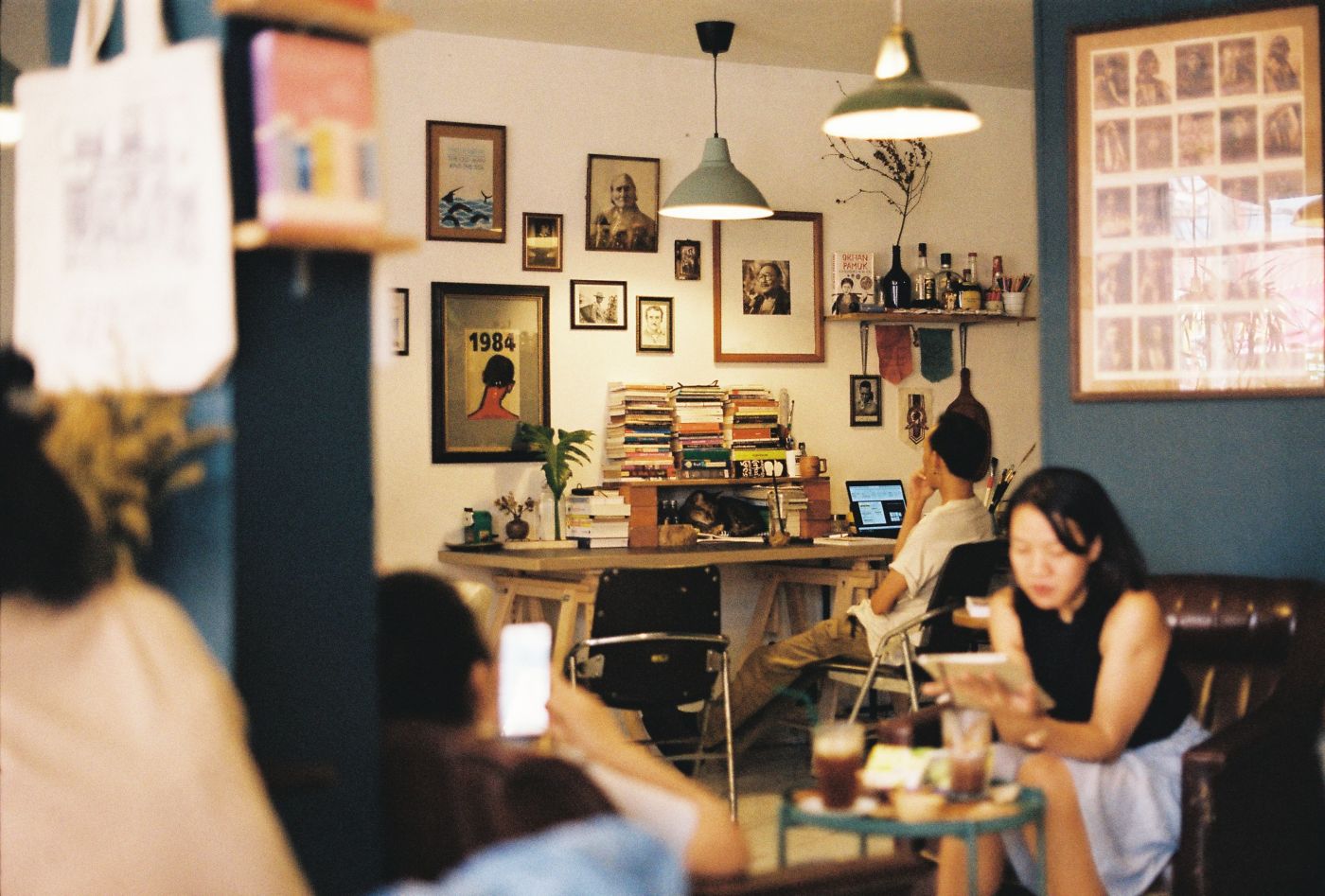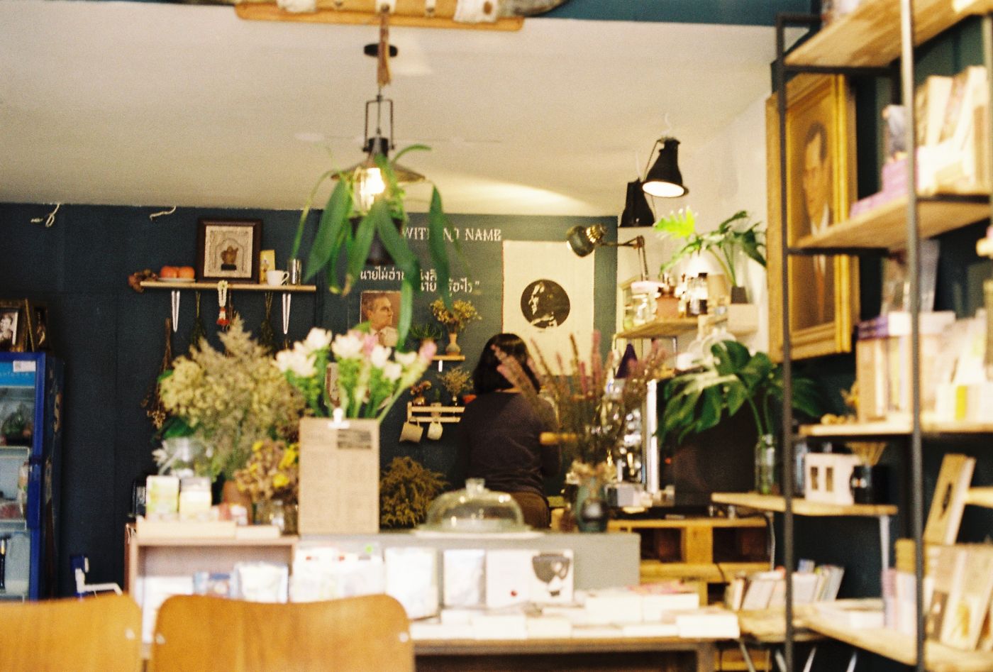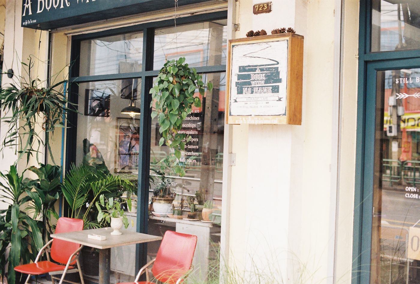 ร้าน A BOOK with NO NAME ถ้าเอ่ยถึงคำจำกัดความตามจริงก็คือ ร้านหนังสืออิสระและคาเฟ่ ร้านหนังสืออิสระอาจจะเป็นคำที่ดูไม่คุ้นหูสำหรับคนอย่างเราที่มักซื้อหนังสือในร้านหนังสือทั่วไปนัก แต่จากที่คุยกับเพื่อน และจากที่เห็น เสน่ห์ของร้านหนังสือแบบนี้ก็คือเจ้าของร้านมักเลือกหนังสือที่น่าสนใจมา ดังนั้นจำนวนหนังสือในร้านอาจจะไม่มากนัก และไม่ใช่หนังสือตลาด คุณอาจไม่เจอนิตยสาร หรือหนังสือนิยายทั่วไปบางชนิดที่นี่ เราไม่ได้พูดคุยกับเจ้าของร้านโดยตรง (ส่วนหนึ่งด้วยความเงียบส่วนตัวเราด้วย ฮ่า) แต่เท่าที่เราอ่านหนังสือบนชั้นก็รู้ได้ว่ามันถูกเลือกมาแล้ว