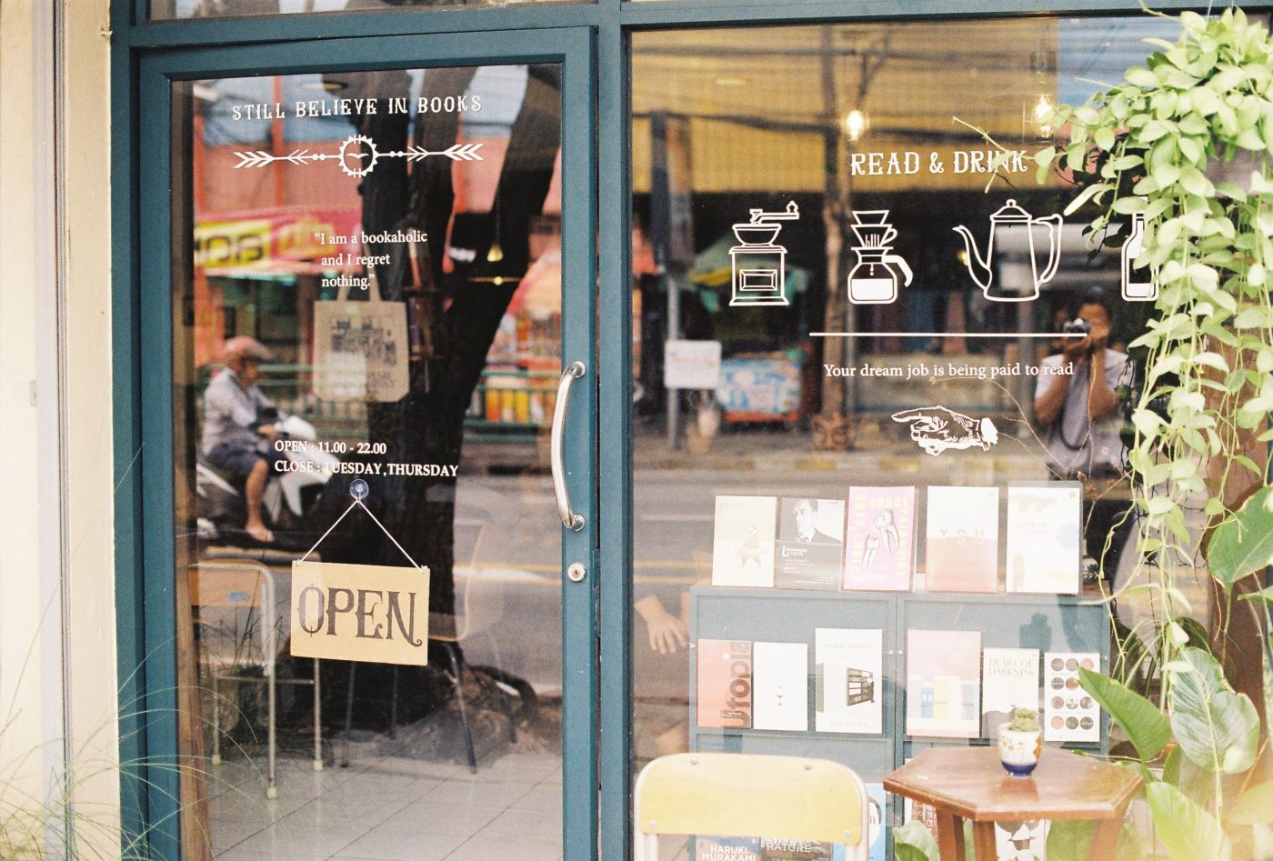 มุมสำหรับสั่งเครื่องดื่มค่ะ ถึงจะเป็นร้านหนังสืออิสระก็จริง แต่ทั้งนี้ก็ยังเป็นคาเฟ่ด้วย มีคุณโดนัทที่เป็นคนทำเครื่องดื่มให้ แล้วในที่สุดเราก็ไม่ต้องจบวันด้วยชาเขียวแก้วนั้น (ดีใจจริงๆนะ) มัชฉะหวานน้อยรสชาดดีถูกเสิร์ฟมาให้ ประทับใจมากค่ะ ราคาไม่แพงมาก (60 บาทเท่านั้น)