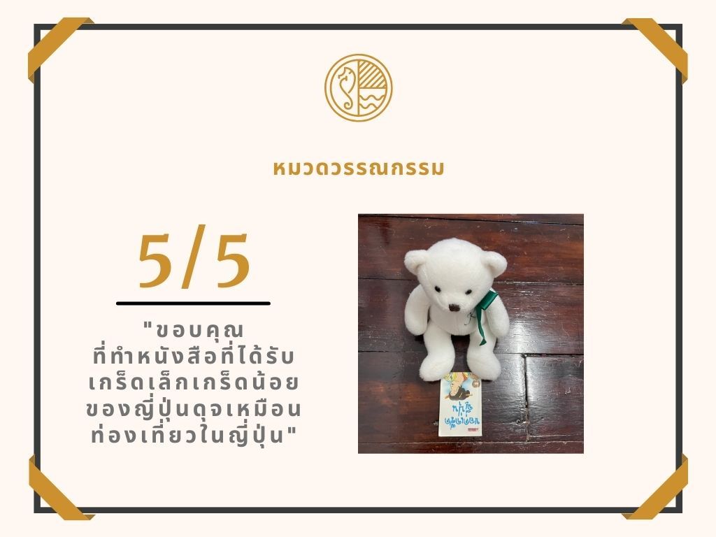 กระผมชอบดื่มชามากขอรับ เพราะขั้วโลกเหนือ บ้านเก่ากระผม หนาวมากขอรับ ท่านแม่จะทำชาให้กระผมดื่ม คลายเหงา พอกระผมเดินทางมาที่นี้ แวะไปอ่านเรื่องเกี่ยวกับชาในเล่มนี้แล้วประทับใจ