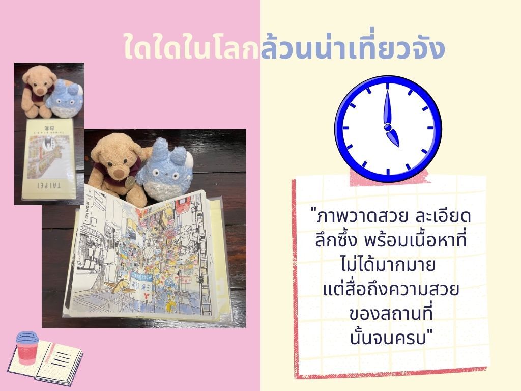 วันนี้กระผมมาพูดถึงหนังสือท่องเที่ยวไต้หวันขอรับ กระผมจะพาไปเที่ยวไทเปขอรับ ภาพในหนังสือเป็นภาพวาดสวยงาม อ่านง่าย เขียนไม่เยอะแต่ได้ใจความขอรับ