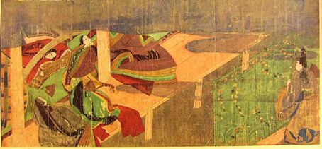 ในรัชสมัยของจักรพรรดิพระองค์หนึ่งได้รับการเรียกขานกันว่า จักรพรรดิคิริสึโบะ พระองค์ทรงสนิทเสน่หานางสนมผู้ต่ำศักดิ์ผู้ถูกเรียกขานว่า คิริสึโบะโนะโคอิ (Kiritsubo no Koi) ซึ่งสร้างความอิจฉาริษยาให้กับพระชายาสนมกำนัลในทั้งหลาย โดยเฉพาะ พระชายาตำหนักโคคิ (Kokiden) ผู้เป็นบุตรีของ ท่านอุไดจิน (เสนาบดีฝ่ายขวา) ผู้ทรงอำนาจยิ่งในราชสำนักและพระชายาตำหนักโคคินั้นยังให้กำเนิดพระโอรสองค์โตซึ่งดำรงตำแหน่งมกุฎราชกุมารด้วย