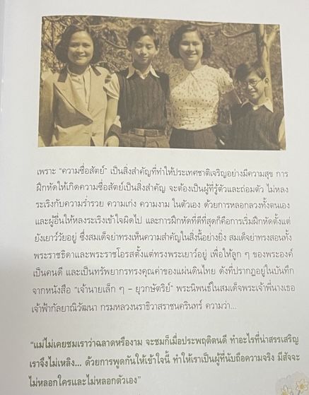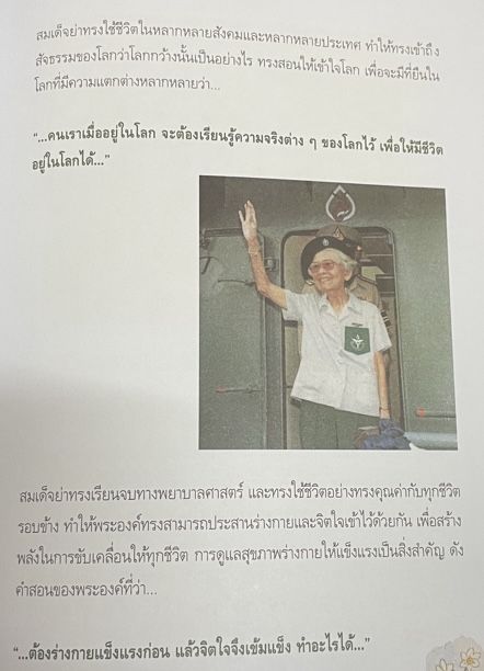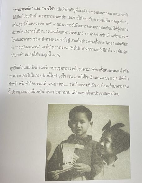 เรื่องราวถัดจากนี้มีประวัติของสมเด็จย่าและจบลงด้วยคำพูดของท่านที่ตรัสสอนในหลวงให้รู้จักประหยัด เพราะความเป็นจริงของคนเราในขณะนี้ เรายิ่งไม่ควรประมาท เรายิ่งต้องประหยัด ไม่ก่อสร้างหนี้และทำให้มีเงินใช้ในช่วงที่เราต้องใช้ก็ได้