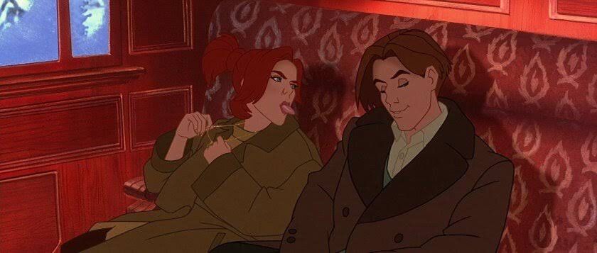 อย่างตอนที่ต้องโดยสารรถไฟ พวกเขาต้องวางแผนกันที่จะกระโดดรถไฟ เพราะรัสปูตินหวังฆ่าอนาสตาเซีย ตอนที่โดยสารเรือ ซึ่งอัญญ่ารู้แล้ว ว่าตัวเองต้องแกล้งเล่นบทบาทเป็นอนาสตาเซีย และตอนนั้น เธอเกือบกระโดดลงน้ำตาย แต่ดริมิที พระเอกเจ้าเดิมก็มาช่วย