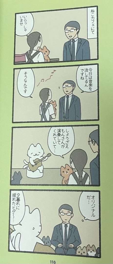 เจ้าแมวทั้งหลายก็เป็นนักดนตรีในการบำบัดรักษาให้เจ้าของคลายทุกข์และกังวล แถมยังเล่นทุกอย่างกับเจ้าของ ไม่ว่า เล่นน้ำ แถมเจ้าแมวนี่ยังทำให้เจ้านายดูแข็งในสายตาผู้คนก็ดูอ่อนโยนขึ้นด้วย