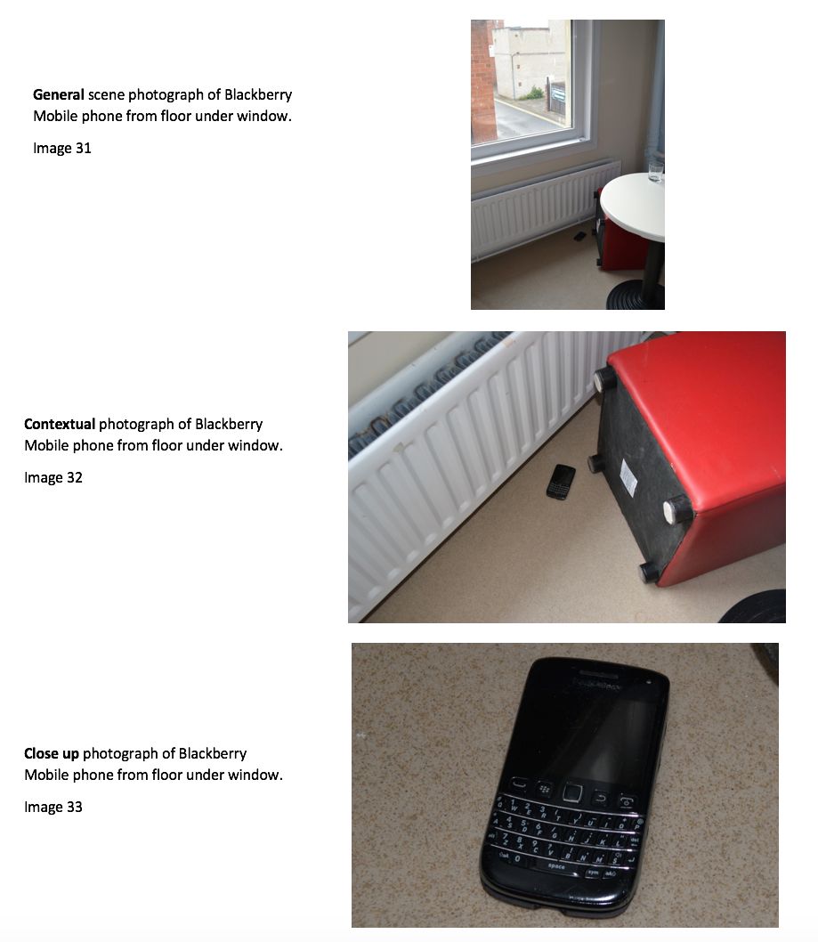 OT 2 Blackberry from floor under window (track location? fingerprint? ID?)