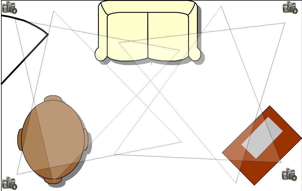 นั่นคือยืนอยู่มุมห้องแล้วถ่ายสวนไปทั้งสี่มุม แต่ขณะเดียวกันเราก็ต้องถ่ายแบบหันซ้ายขวาเพื่อครอบคลุมด้านข้างด้วย