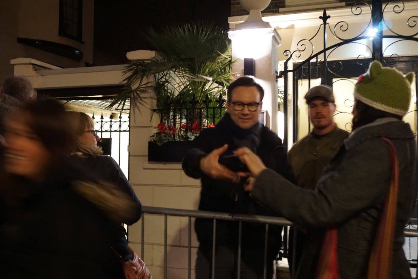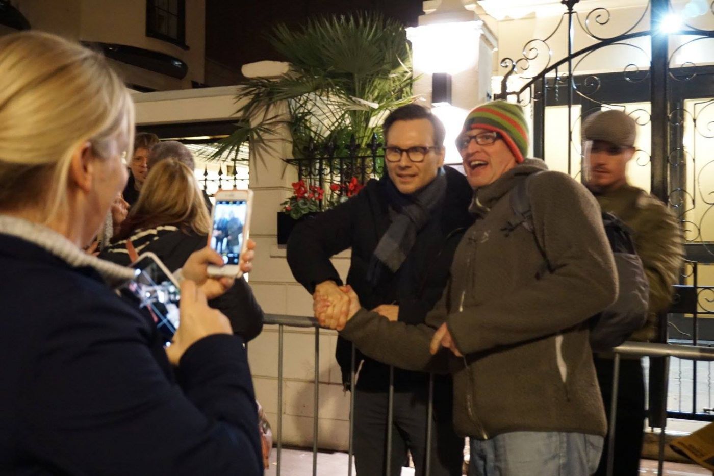 เจ้าหน้าที่ก็แจ้งว่า ตอนคริสเตียนออกมาเขาจะยืนตรงนี้แล้วทุกคนก็ทยอยเดินขึ้นมาเรื่อยๆ ใครที่จะเซลฟี คริสเตียนเขาอาจจะหยิบกล้องคุณไปถ่าย อย่าเพิ่งคิดว่าเขาเสียมารยาทนะ