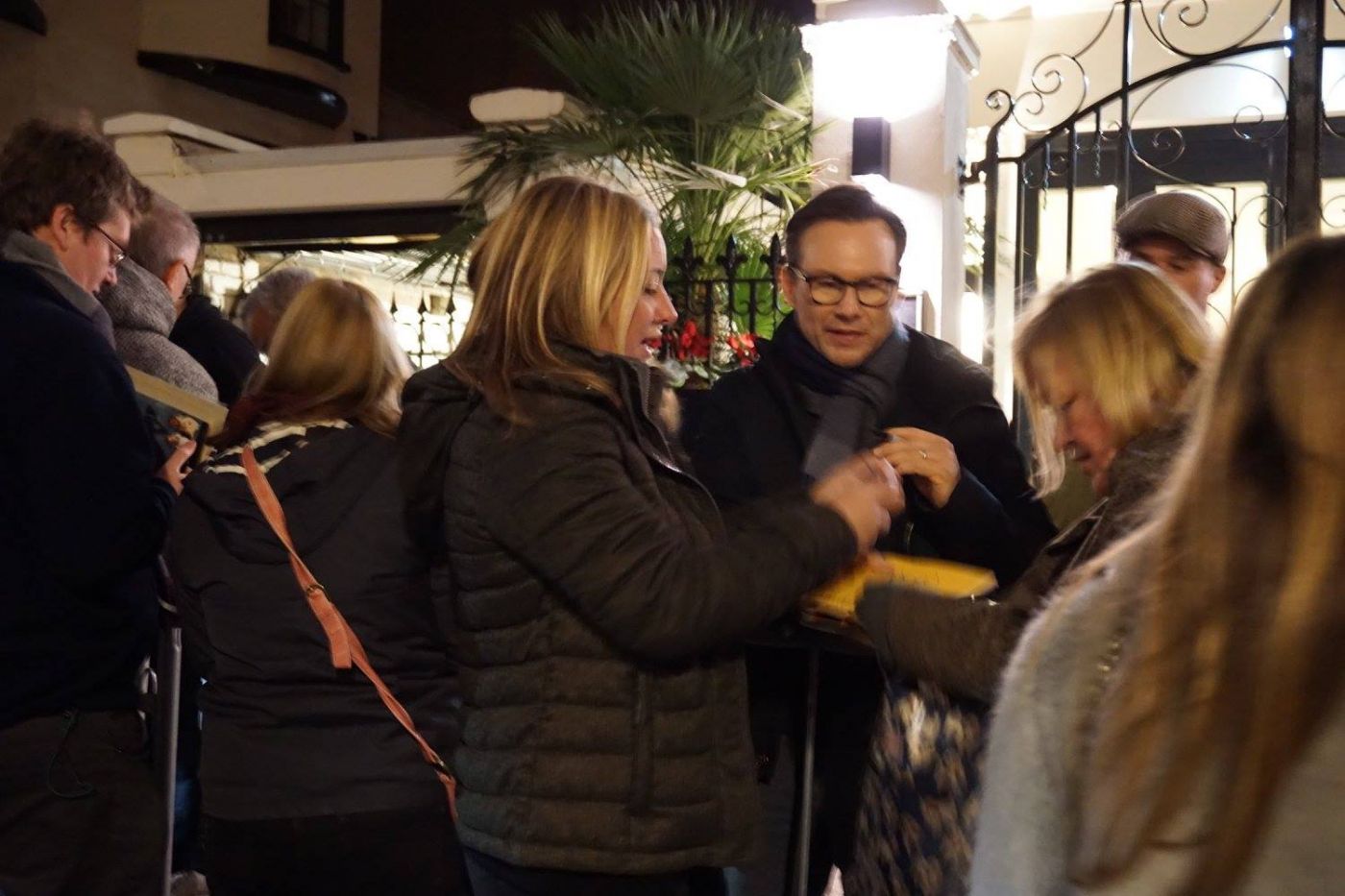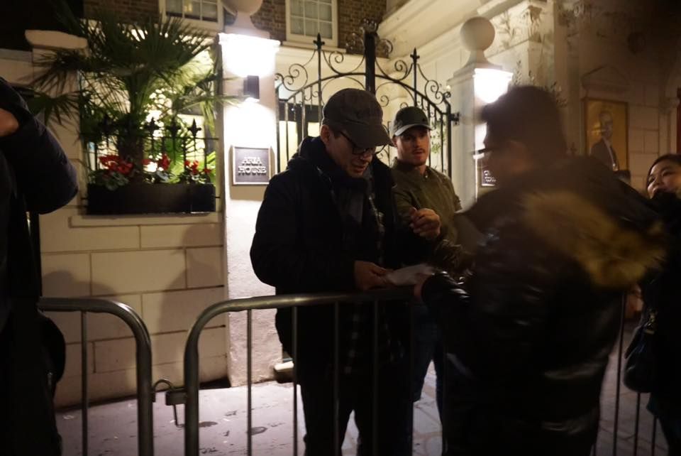 เนื่องจากไม่ได้ดูละครแล้วเลยออกจากโรงแรมตอนใกล้ๆ สามทุ่ม ยี่สิบนาทีนิดๆ ก็มาถึง ไปซื้อโปรแกรมที่โรงละครแล้วก็ยืนรอเวลาเขาแสดงเสร็จ (หนาวมากกกกก) พอคนดูทยอยออกก็เดินไปรอสเตจ ดอร์เลย
