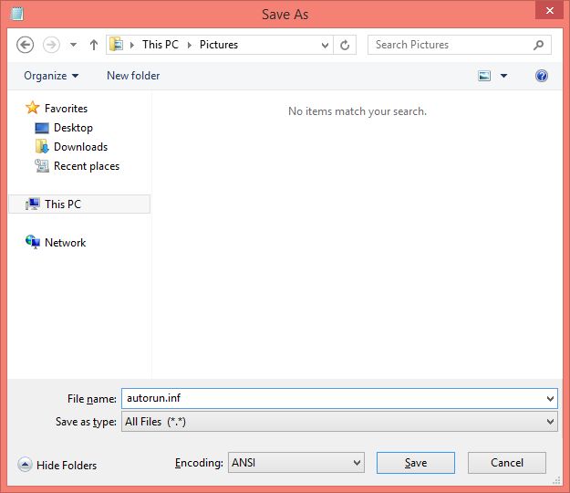ตรง File Name ตั้งชื่อว่า autorun.inf เท่านั้น