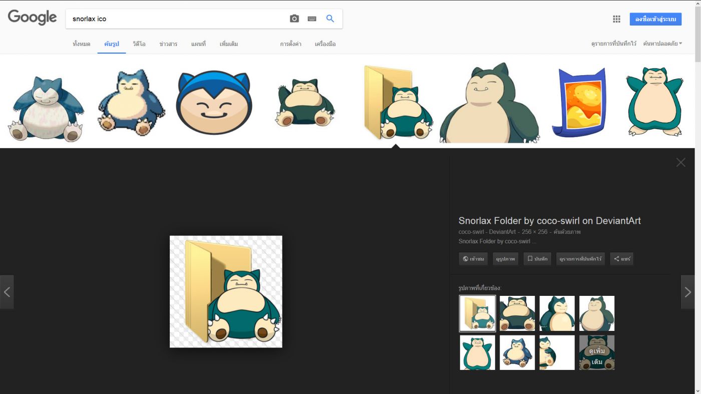 กูเกิ้ลหารูปที่ต้องการได้เลย โดยการพิมพ์ชื่อโปเกม่อนที่ต้องการเป็นภาษาอังกฤษ แล้วพิมพ์ต่อด้วยคำว่า ico หรือ icon