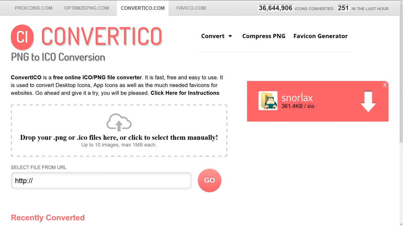 หากไฟล์รูปที่เซฟได้เป็นไฟล์ .PNG เราจำเป็นต้องแปลงไฟล์รูปให้เป็น .ICO เพื่อให้สามารถแสดงผลได้อย่างถูกต้อง เข้าไปที่ http://convertico.com/ ลากไฟล์รูปลงไปในกล่องสีเทา รอสักครู่ ระบบจะแปลงไฟล์รูปให้ เมื่อแปลงไฟล์เสร็จแล้วจะปรากฏกล่องสีแดงทางด้านขวา คลิกเพื่อดาวน์โหลด