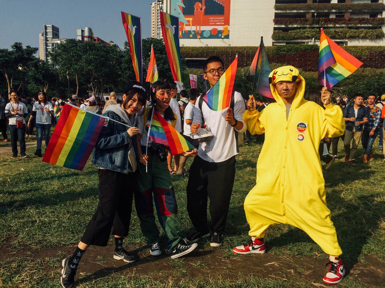 การแต่งตัวที่จัดเต็ม พร้อมกับธงสีสายรุ้งที่เห็นได้แทบทุกที่