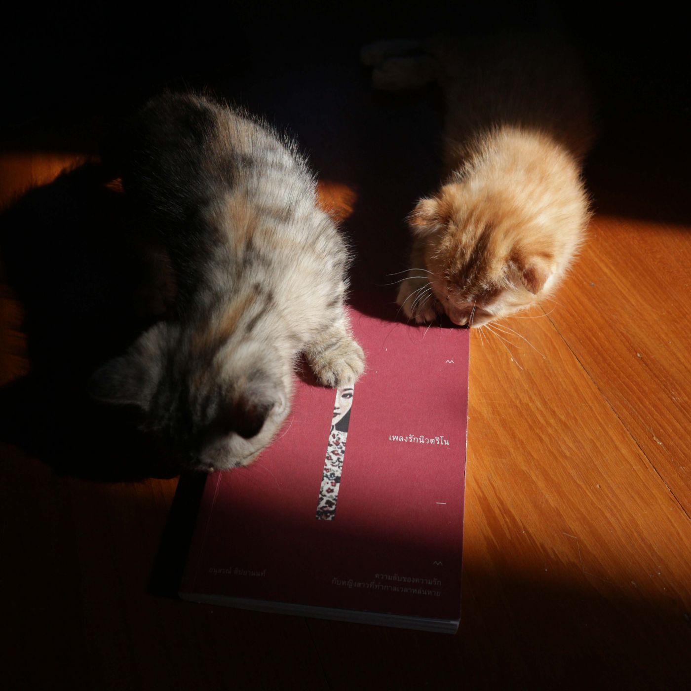 จะมีหนังสือเล่มไหนอีกไหมที่แม้แต่แมวยังชอบ (คือวางถ่ายรูปอยู่เดินเข้ามาดม...กัดเล่นเลย อย่างสนุกสนาน กึ่งน่ารักกึ่งโมโห หนังสือฉันนนนนนนน)