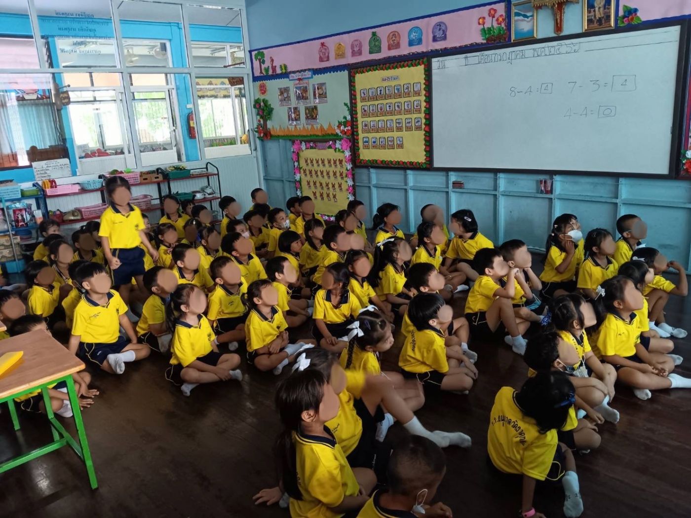 และอาทิตย์ที่สิบเราจะวนไปเจอกับน้อง อ.2/3 - อ.2/4 และน้อง อ.1/1 - อ.1-2 ค่ะ โดยในอาทิตย์นี้จะมีกิจกรรมแห่เทียนพรรษา วันอังคารที่ 25 ก.ค. 66 วันนี้เราจะอยู่ห้อง อ.2/4 ค่ะ พอดีกับที่คุณครูประจำชั้นจะต้องประสานงานหลายอย่าง เลยจะเหลือแค่ครูนักศึกษา พี่เลี้ยง และเรา เลยได้ช่วยดูแลเด็กนักเรียน เพราะว่าห้องนี้เด็กเยอะมาก เริ่มจากตอนเช้าเด็กนักเรียนจะนำดอกไม้มาเราก็ให้เอาใส่ถังไว้ พอถึงเวลาเข้าแถวก็พาไปทำกิจกรรมตอนเช้าตามปกติ หลังจากนั้นพาไปเข้าห้องน้ำก่อน และแจกดอกไม้ให้กับเด็ก บางคนก็ลืมเราดอกไม้มาเราเลยต้องแบ่งดอกไม้จากของเพื่อนในห้องให้ ระหว่างที่แห่เทียนอยู่มีเด็กนักเรียนบ่นนิดหน่อยค่ะ เพราะว่าอากาศร้อน และเดินหลายรอบ ตอนแรกก็ดีใจที่ได้แห่เทียนอยู่แหละ แต่พอหลังๆ มาเริ่มจะไม่ไหว อยากกลับโรงเรียนกันเป็นระนาวเลย ในวันนี้เราลืมถ่ายรูปค่ะ ปกติเวลาอยู่ที่โรงเรียนก็ไม่ค่อยได้จับโทรศัพท์เลย นอกจากตอนที่เด็กนอนกลางวันกัน เสียดายมากที่ลืมเอาโทรศัพท์มา เป็นครั้งแรกที่เราได้เข้าไปในโบสถ์เลยค่ะ(ปกติเดินผ่านตอนกลับบ้านอย่างเดียว) ภายในโบสถ์สวยมากค่ะ และเหตุการณ์ที่น่าประทับอีกวันในอาทิตย์นี้ คือ วันจันทร์ที่ 24 ก.ค. 66 ตอนเช้าคุณครูและพี่เลี้ยง อ.2 - อ.3 มีประชุม พวกนักศึกษาเลยต้องดูแลเด็กพักนึง คุณครูเลยให้เราไปช่วยดูแลเด็กอนุบาลสามค่ะ ส่วนนักศึกษาอีกสองคนให้ช่วยดูเด็กอนุบาลสอง คุณครูจับพี่อนุบาลสามมาไว้ห้องเดียวกันและเปิดโทรทัศน์ให้ดูที่ห้อง อ.3/1 ให้เราไปนั่งเฝ้าค่ะ ตอนแรกก็ยากค่ะ เพราะว่าเขาคุยกัน ไม่สนใจการ์ตูนที่เปิดให้ดู พอถามความต้องการแล้ว คำตอบที่ได้ คือ การ์ตูนไม่สนุก เราเลยเปลี่ยนการ์ตูนให้จากการ์ตูนของ BabyBus เปลี่ยนเป็นโดราเอม่อนเดอะมูฟวี่ ตอนไดโนเสาร์ตัวใหม่ของโนบิตะแทน เราลงทุนเข้า Netflix ของเราในโทรทัศน์เลยด้วย ซึ่งได้ผลค่ะ เด็กๆ สนใจมากเลยนั่งดูอย่างเงียบสงบทันที เนื่องจากเป็นวันจัทร์เด็กนักเรียนจะใส่ชุดพละสีเหลืองกัน เรารู้สึกว่าเหมือนทั้งห้องเต็มไปด้วยแก๊งมินเนี่ยนเลยค่ะ5555555555555555555555