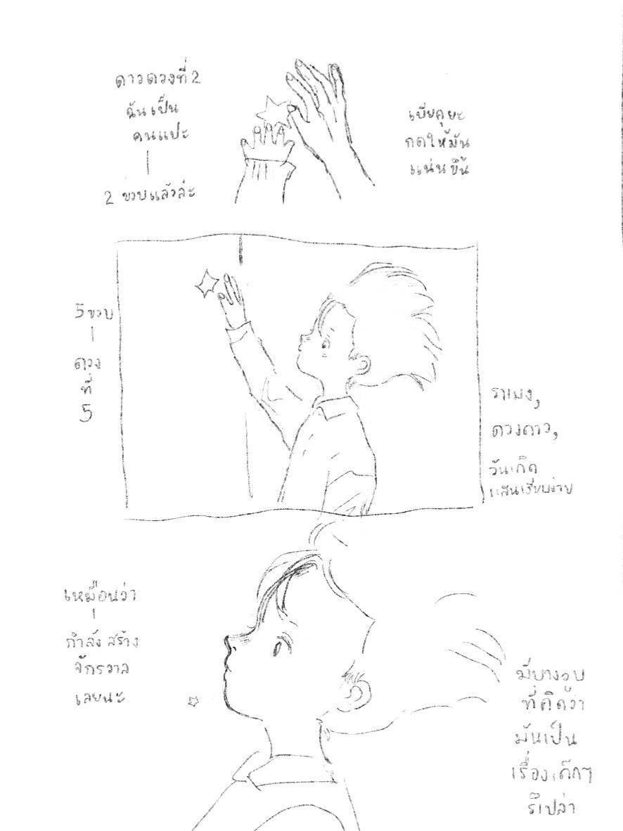- ความคิดแรกก็คงจะเป็น อยากวาดอะไรที่มีดาวเยอะๆ จังเลย อะไรแบบนี้ค่ะ