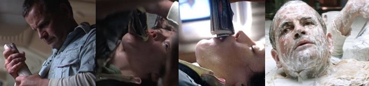 2.2.3 การข่มขืนกับการกำจัดเสียงของผู้หญิง ในตอนที่ริปลี่ย์รู้ถึงภารกิจลับ 937 ซึ่งเป็นภารกิจที่แท้จริงในการเดินทางครั้งนี้ คือ การจับเป็นเอเลี่ยนเพื่อนำกลับมาทดลองให้ได้ แม้ว่าจะต้องแลกมาด้วยชีวิตของลูกเรือกี่คนก็ตาม โดยมีนักวิทยาศาสตร์ประจำยานอย่างแอชเป็นตัวการหลักบนยานนอสโตรโม เมื่อริปลี่ย์ทราบดังนั้นจึงไปหาแอชทันที แต่เธอก็ถูกแอชทำร้ายด้วยการพยายามยัดหนังสือโป๊ลงไปในปากของเธอ จากฉากที่แอชนำหนังสือโป๊ที่ถูกม้วนจนมีลักษณะเป็นแท่งยาวคล้ายกับอวัยวะเพศชายเพื่อปิดปากไม่ให้ริปลี่ย์สามารถพูดอะไรได้ เสมือนการมีเพศสัมพันธ์ทางปาก (Oral Sex) ซึ่งแสดงให้เห็นถึงสัญลักษณ์ในการข่มขืน เมื่อผู้ชายใช้ความรุนแรงทางเพศที่มากไปด้วยแรงปรารถนาของตัวเองกับผู้หญิงเพื่อให้ผู้หญิงเงียบ
