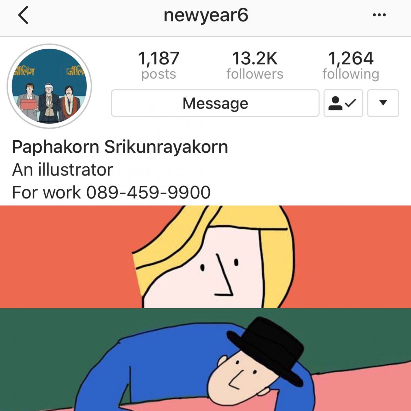 newyear คืออีกคนที่เราชอบลายเส้นมาก เป็นการใช้เส้นน้อยๆสร้างคาแรคเตอร์คนท่าทางและหน้าตาเป็นเอกลักษณ์เฉพาะ สีที่ใช้ก็ตรงไปตรงมา ชอบความครีเอทมาก เค้าจะมีกิจกรรมวาดรูปตามชื่อของคนที่มาเม้น 10 คนแรก ในเพจเหสบุ๊คนะ ตามไปเล่น ทันไม่ทันก็ไปลุ้นกันเอา555