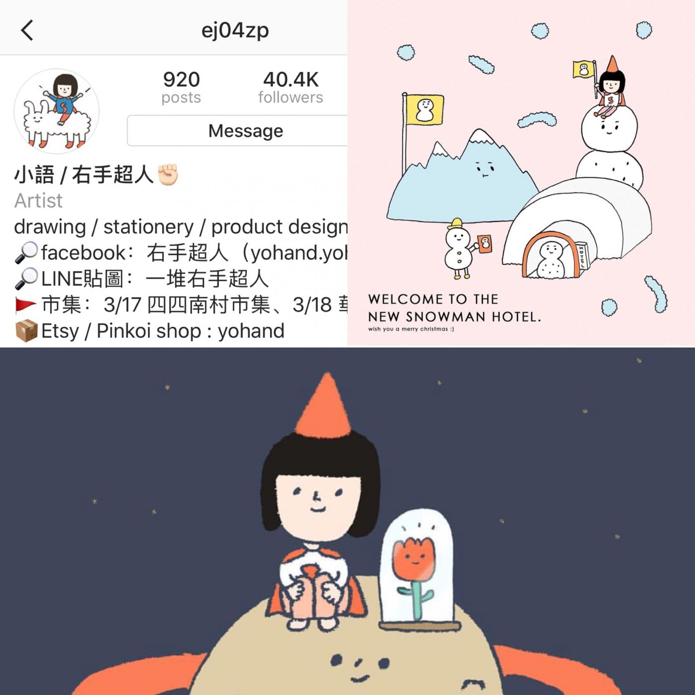 คนสุดท้ายแล้นนน ... yohand นั่นเองฮะ เส้นง่ายๆ กับตัวการ์ตูนที่เป็นเอกลักษณ์ กับสีที่เข้ากัน น่ารักทุกตัว ชอบตัวหมาที่สุด แต่ตัวอื่นๆก็ชอบ เค้ามีงานของเค้าขายใน Pinkoi นะฮะ เว็ปขายของแฮนเมด สังกัดใต้หวัน