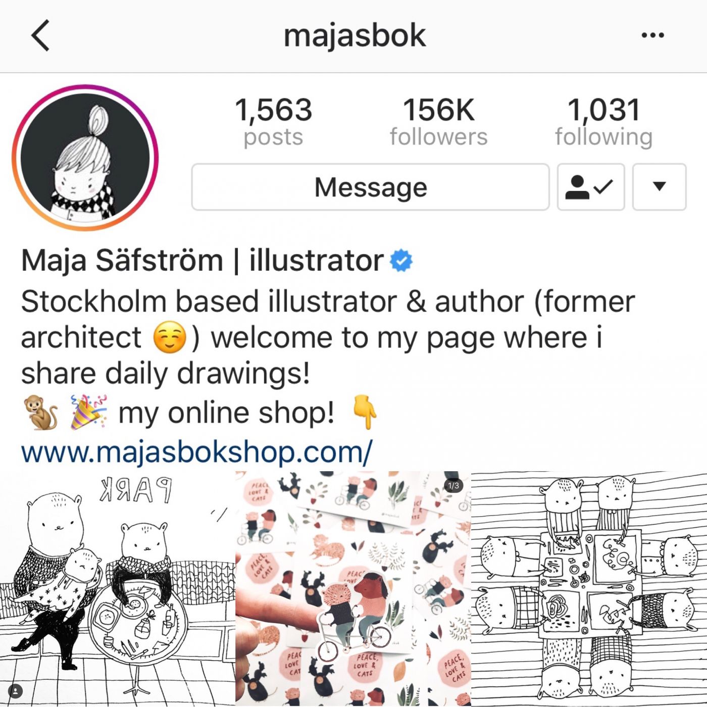 ที่ชอบตามงานคนนี้เพราะ เค้าจะเป็นคนที่ชอบวาดภาพแบบไม่ลงสี แล้วเป็นการวาดลงเส้น ที่มันเป็นสัดส่วนที่พอดีของสีขาวของกระดาษ กับเส้นวาดสีดำที่มันเข้ากันพอดี อย่างรูปที่เราเลือกมา (รูปตรงกลาง) คือเป็นรูปส่วนน้อยที่เค้าจะลงสี ชอบคาแรคเตอร์การ์ตูนนานาสัตว์ของเค้า บางวันก็จะมีคลิปมาลงใน