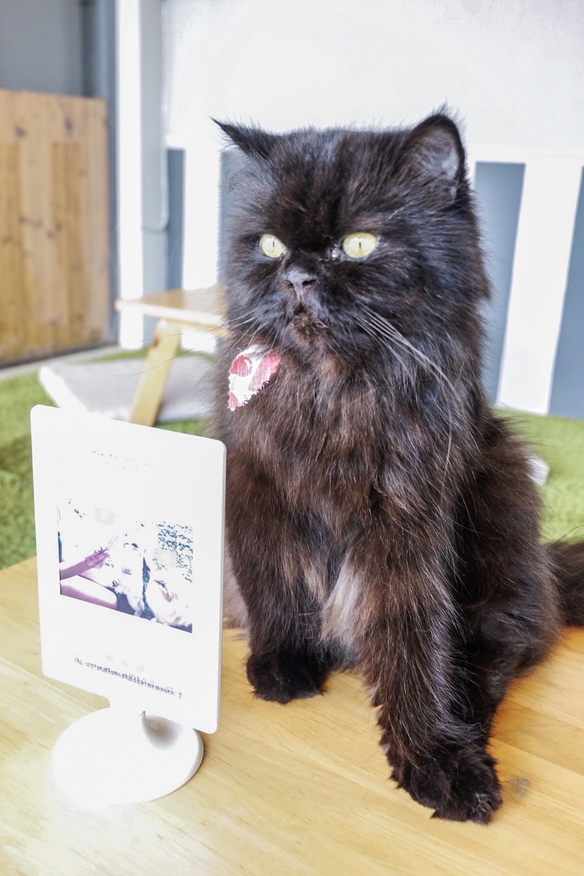 หมีกับเพื่อนนัดกันวันธรรมดาค่ะ แถมไปตั้งแต่ร้านเพิ่งจะเปิดไม่นานเลยกลายเป็นลูกค้ากลุ่มแรกไปเลย ฟินมากเพราะเหมือนร้านทั้งร้านและแมวทุกตัวเป็นของเรา (ฮ่า) โดยร้านนี้จะเปิดตั้งแต่เวลา 12:00-22.30 น. ตอนหมีไปมีพนักงานประจำอยู่แค่คนเดียวค่ะ