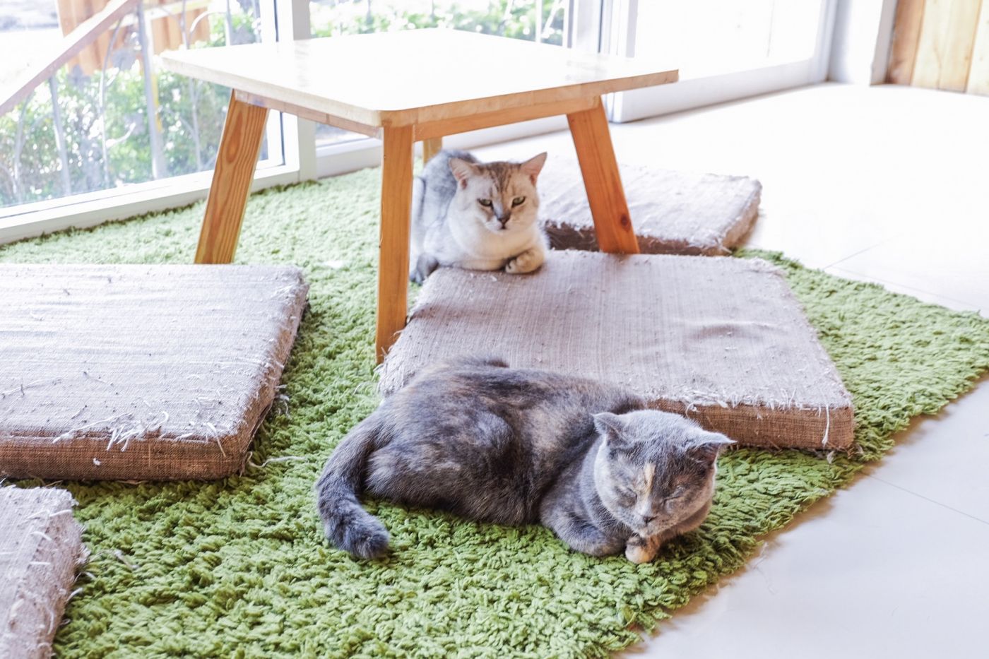 น้องๆ จะนอนเล่นอยู่ตามที่ต่างๆ ในบริเวณร้าน