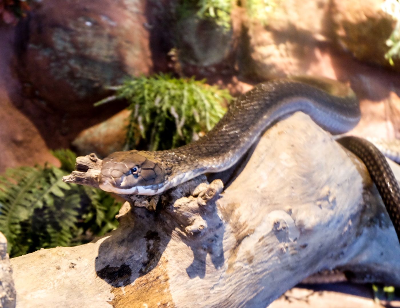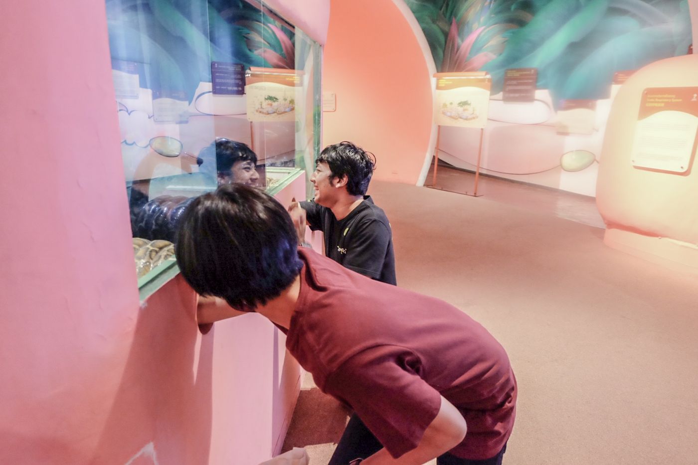 งูหลายสายพันธุ์ที่มีอยู่ในพิพิธภัณฑ์แห่งนี้นะคะ หมีทราบมาว่านำเข้ามาจากแหล่งที่อยู่ตามธรรมชาติของมัน เช่น อนาคอนด้า ก็พาน้องมาจากอเมซอนเลย ซึ่งในกรณีที่น้องตัวโตขึ้นจนไม่สามารถเลี้ยงดูในตู้นี้ได้แล้ว ทางพิพิธภัณฑ์ก็จะปล่อยน้องกลับสู่ธรรมชาติค่ะ