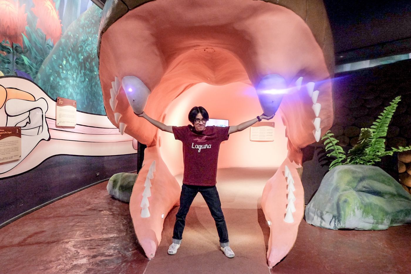จากภาพจะเห็นว่าเรากำลังโดนงูยักษ์เขมือบเข้าไปค่ะ ในจุดนี้เราจะได้เรียนรู้เกี่ยวกับระบบการย่อยอาหารของงูด้วยว่ามีอะไรที่งูกินเข้าไปแล้วย่อยได้หรือไม่ได้บ้าง