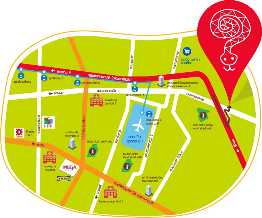 แผนที่สำหรับเดินทางไป Siam Serpentarium จากเว็บไซต์ http://www.siamserpentarium.com/th/
