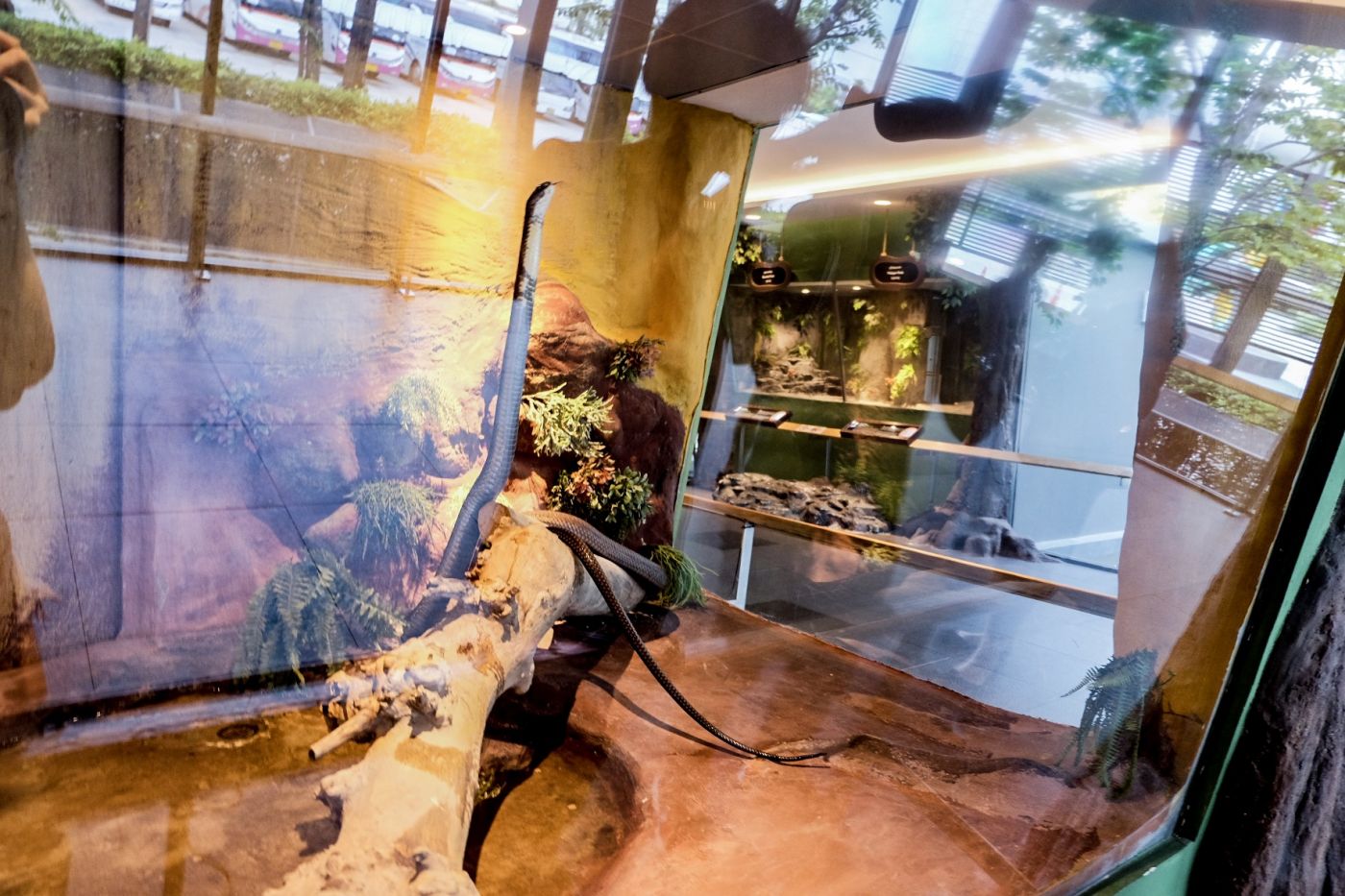 บริเวณที่น้องงูอยู่หมีจะไม่ได้ถ่ายภาพบรรยากาศมานะคะ เพราะว่าหันไปทางไหนก็มีแต่ทัวร์จีน หนีไม่พ้นจริงๆ ค่ะ แต่จะอธิบายให้เห็นภาพว่าเหมือนเราอยู่ในโถงขนาดใหญ่ แล้วก็จะมีน้องงูในตู้กระจกเรียงกันไปตามทางเดิน ซึ่งขนาดตู้ก็ใหญ่พอสมควรเหมาะกับขนาดของงูแต่ละชนิด ยิ่งถ้างูตัวใหญ่มาก ขนาดของตู้ก็จะใหญ่ตาม และภายในตู้ก็จะตกแต่งให้เข้ากับสภาพแวดล้อมที่น้องงูชอบค่ะ