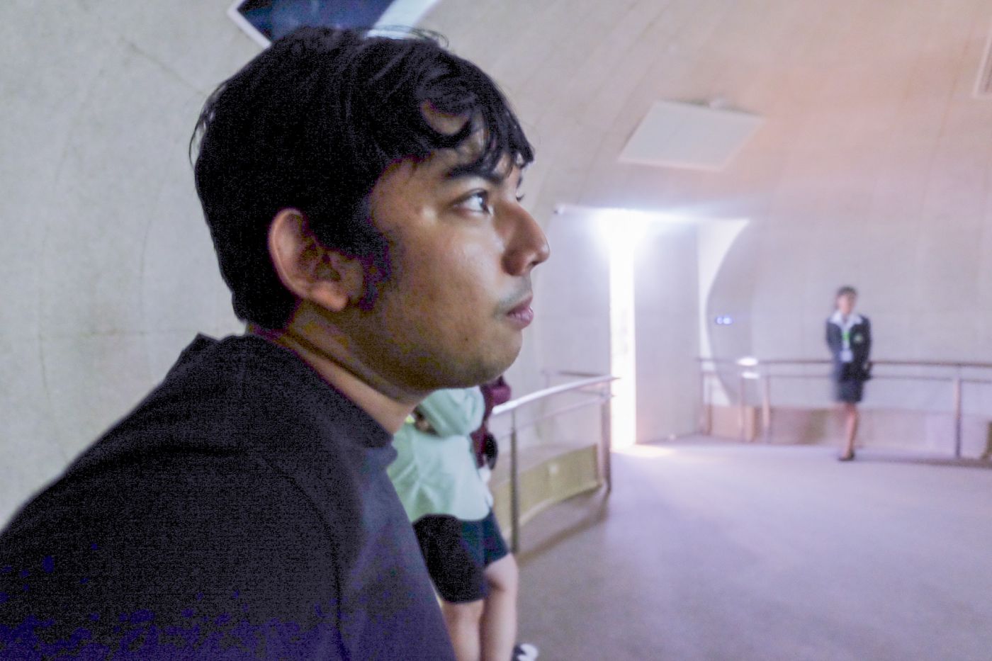 พอใกล้จะได้เวลาของรอบต่อไป พวกหมีก็เลยเดินกลับเข้าไปรอข้างในค่ะ ตอนแรกเราตั้งใจกันว่าจะเข้าไปเป็นกลุ่มสุดท้าย เพราะไม่อยากเดินนำหน้าแล้วมีคนจีนเดินเบียดๆ แซงๆ ตามสไตล์เขาอะเนาะ แต่กลายเป็นว่าพี่พนักงานโบกมือเรียกให้เข้าไปเป็นกลุ่มแรกเลย พอเข้าไปมันก็จะเป็นโดมครึ่งวงกลมสีขาวๆ ที่หมีมารู้จากวิทยากรว่าเราอยู่ในไข่งูนั่นเอง เราคือลูกงูที่กำลังจะเกิดค่ะ!!!