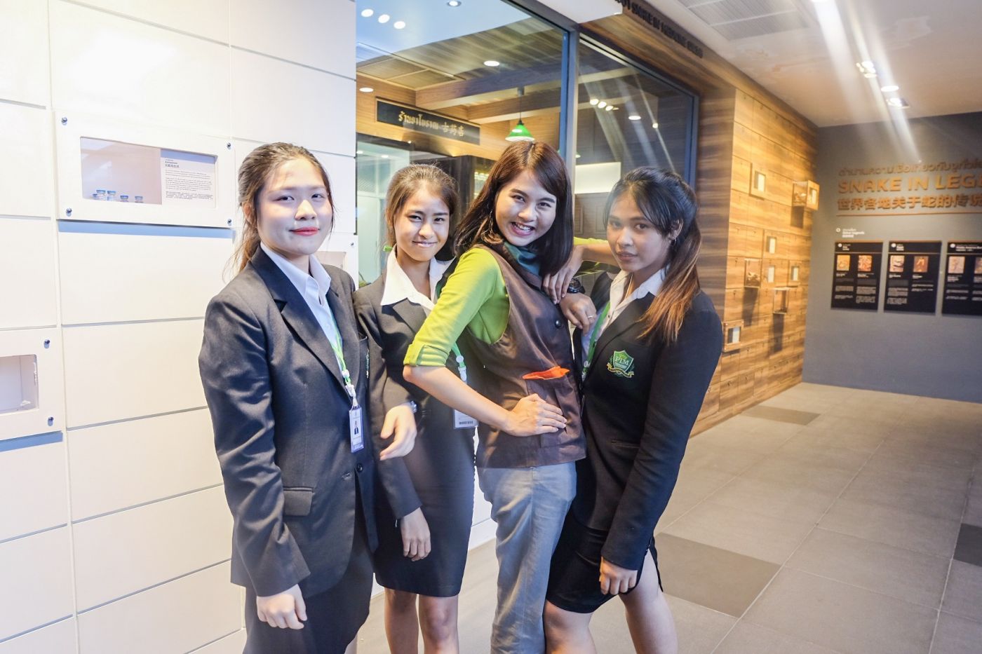 ในโซนนี้คือเราเป็น VIP ค่ะ มีวิทยากร 2 คน กลุ่มหมี 3 คน และคนไทยแปลกหน้าอีก 2 คน ที่เป็น VIP เพราะว่าจะไม่มีคนจีนมาเกี่ยวข้องกับเราเลยในช่วงนี้ เราจะได้ดูภาพฉายต่างๆ พร้อมความรู้เกี่ยวกับการเป็นงูอีกมากมาย เช่น ศัตรูของงูมีอะไรบ้าง, งูมีลักษณะการเคลื่อนที่กี่แบบ, งูกินอะไรเป็นอาหาร เป็นต้น ซึ่งค่อนข้างตื่นตาตื่นใจเลยค่ะ