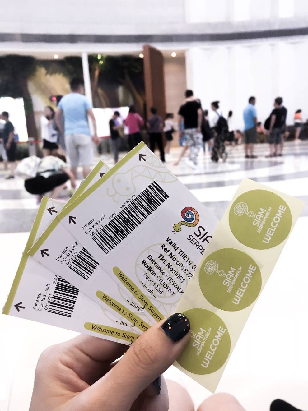เรา 3 คนเดินทางถึงพิพิธภัณฑ์งูตอนประมาณเกือบบ่ายโมง แต่รอบที่ปล่อยให้เข้าจะเป็นบ่ายครึ่งค่ะ เนื่องจากว่าทัวร์จีนลงเยอะมากกกกกก เราเลยต้องรอนิดนึงเพื่อไม่ให้แออัดเกินไป เพื่อไม่ให้เสียเวลาไปถึงก็ตรงไปที่เคาท์เตอร์ซื้อตั๋วเลยค่ะ ปกติแล้วราคาค่าเข้าชมจะอยู่ที่ 350 บาท แต่ถ้าเป็นนักศึกษาก็โชว์บัตรนักศึกษาให้พี่ๆ พนักงานดูซะนะคะ เพราะเราจะได้เข้าชมเจ้างูน้อยทั้งหลายในราคาเพียง 100 บาทเท่านั้น!!!