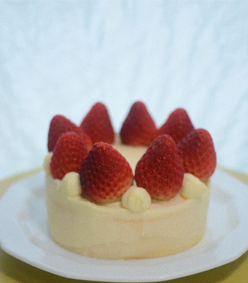 แล้วก็หยิบสตรอเบอร์รี่ที่เตรียมไว้มาจัดบนเค้ก หูยยย มินิมอลสุดๆ Korea Style
