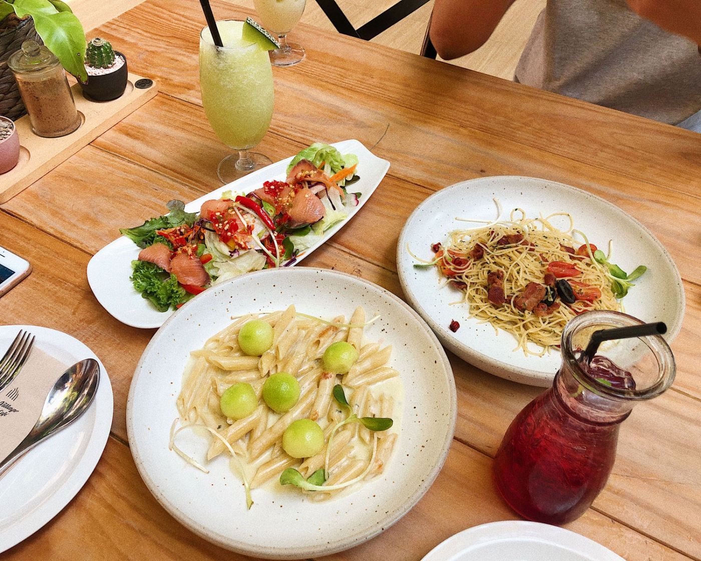 ที่แรกแวะกันก็คือ มีนา cafe สไตล์ทุ่งนาที่กำลังฮิตเวอร์