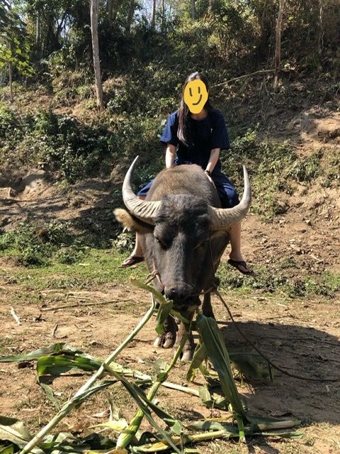 ที่นั่นจะมีสต๊าฟพาเราไปแนะนำว่ามีอะไรบ้าง มีอะไรให้ทำบ้าง บ้านที่เราอยู่เป็นบ้านยกใต้ถุนสูงอยู่กลางทุ่งนา (แต่น่าเสียดายตอนที่ไปไม่ใช่ฤดูทำนา เลยได้มาเป็นหญ้าแห้ง ๆ แทน) มีไฟฟ้าจากพลังงานโซลาเซลล์ให้ใช้ เปิดจากบ้านออกมาก็เจอภูเขา เป็นวิวที่โคตรรรรรดี แค่มาเห็นแบบนี้ก็คุ้มแล้ว