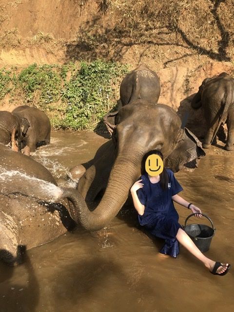 กิจกรรมที่น่าจะเป็นจุดขายของที่นี่เลยก็คือ อาบน้ำช้าง ที่โดนทั้งพ่นน้ำใส่ โดนช้างจุ๊บแก้มไปตามระเบียบ คือน่ารักมากกก อยากลงไปน้วยคาน้ำ (ถ้าไม่ติดว่าช้างขี้ไว้เต็มไปหมด แง)