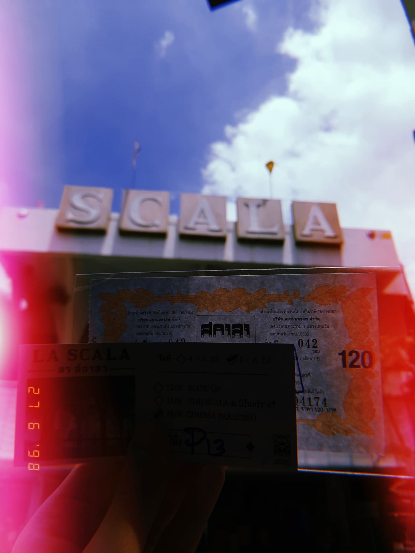 จนมาถึงวันที่ ๒๔ มิถุนายน เพจเฟสบุ๊กของหอภาพยนตร์ฯ ได้ประกาศโปรแกรมที่ชื่อว่า La Scala ที่จะจัดฉายภาพยนตร์เป็นครั้งสุดท้ายของสกาลาในวันที่ ๔-๕ กรกฎาคมด้วยกัน ๔ เรื่อง ได้แก่ Blow-Up (ค.ศ.๑๙๖๖), สารคดีควบ The Scala (๒๕๕๙) กับ นิรันดร์ราตรี (๒๕๖๐) และ Cinema Paradiso (ค.ศ. ๑๙๘๘) ซึ่งใจจริงผมอยากจะดูทุกเรื่องเลยด้วยซ้ำ แต่ด้วยเวลาชีวิตที่ไม่เอื้อนวยให้ดูได้ทั้งหมดผมจึงขอรวบยอดการอำลาโรงภาพยนตร์แห่งนี้ไว้กับรอบสุดท้ายของ Cinema Paradiso ที่ได้ยินกิตติศัพท์ความดีงามของหนังมาเนิ่นนาน