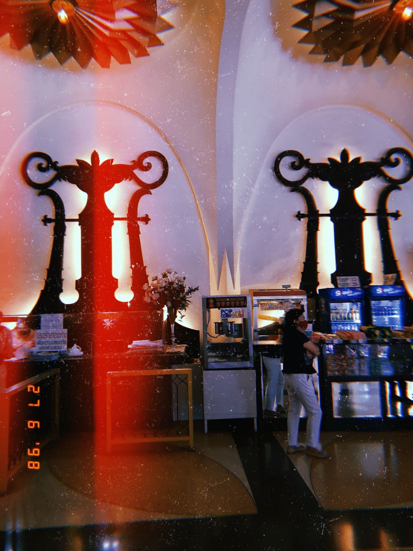 ระหว่างที่รอคิวผมก็ยืนมองผู้คนบ้าง ถ่ายรูปบ้าง ชมแผงงานปูนปั้นที่ประดับอยู่ด้านบน (ก็เพิ่งสังเกตอย่างจริงจังเป็นครั้งแรกด้วยว่า บนแผงนั้นมีทั้งศิลปะไทย อินเดีย จีน ญี่ปุ่น และบาหลีผสมผสานกันอยู่) ดูซิทคอมในเน็ตฟลิกซ์บ้าง เมื่อยบ้าง (ที่จริงก็ไม่ใช่แค่บ้าง เมื่อยจริง ๆ เลยแหละครับ) แล้วแถวก็คดเคี้ยวมากจนทำให้ผมอดกังวลไม่ได้ว่า จะได้ตั๋วรอบสุดท้ายของวันที่ ๕ กรกฎาคมหรือเปล่า ยิ่งมีคุณป้าพนักงานอีกคนหนึ่งมาเดินนับจำนวนคนที่ยืนรอคิวด้วยแล้วทำให้ผมยิ่งหวั่นเข้าไปใหญ่ ซิกคอมที่ดูอยู่ก็ไม่อาจทำให้ผมหยุดคิดมากได้ แต่สุดท้าย หลังจากที่ยืนรอมาเป็นเวลาสองชั่วโมงครึ่ง ผมก็ได้ตั๋วของ Cinema Paradiso มาครอบครองสักที